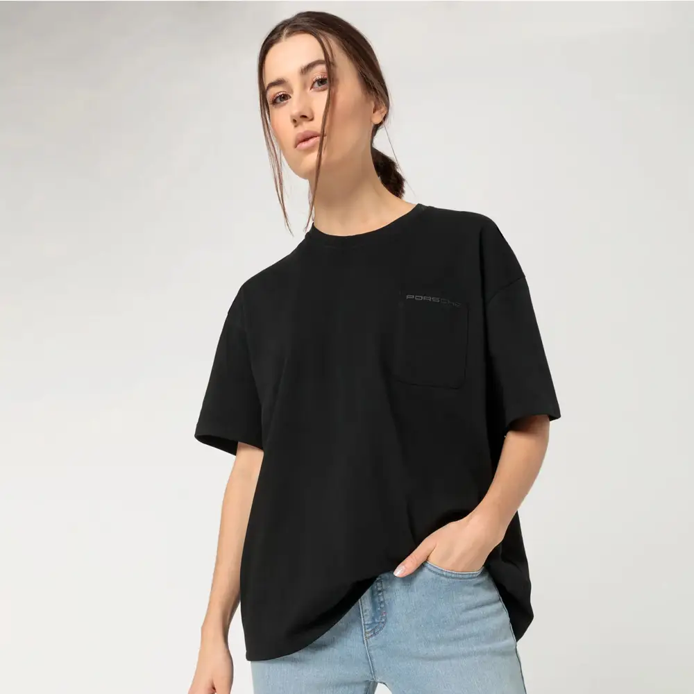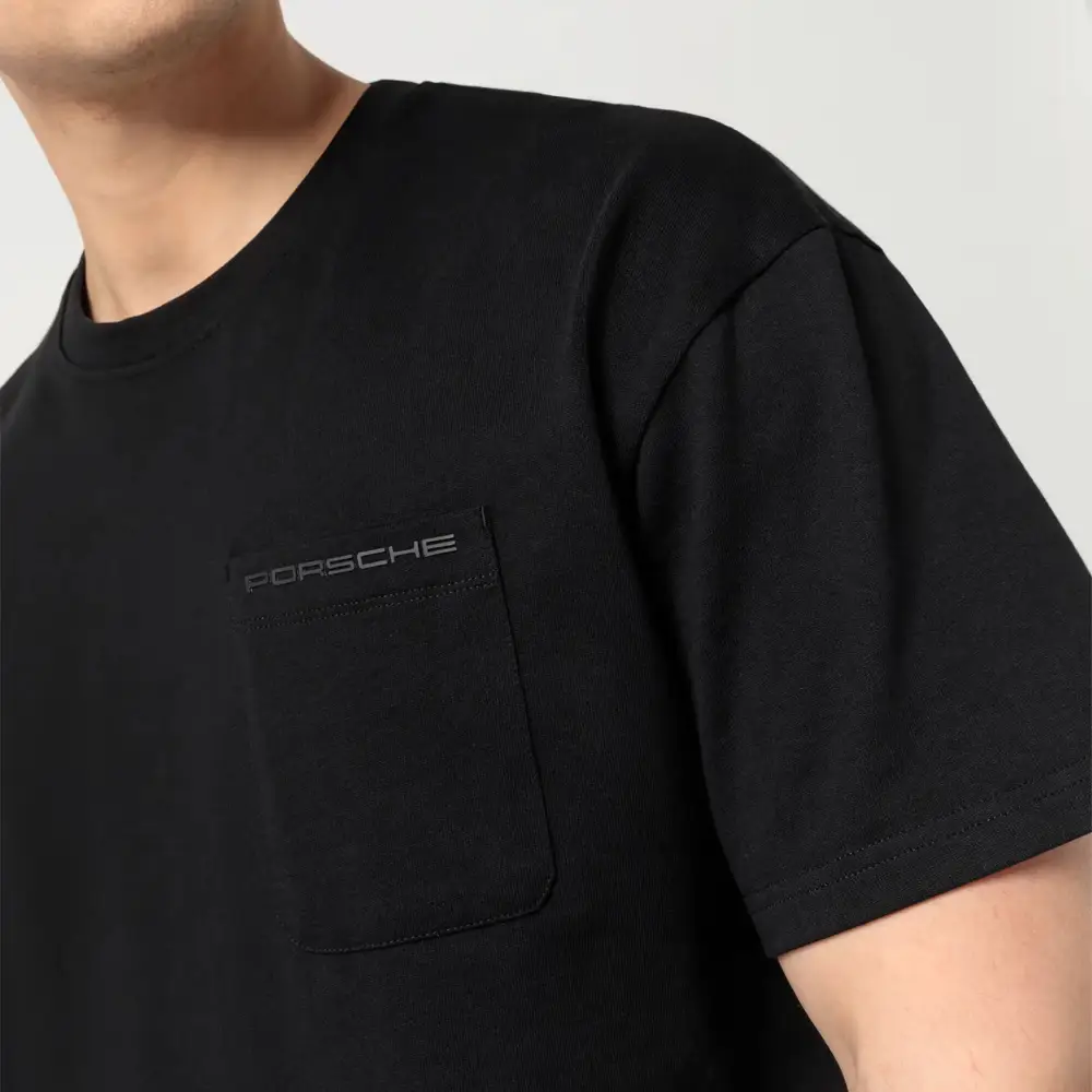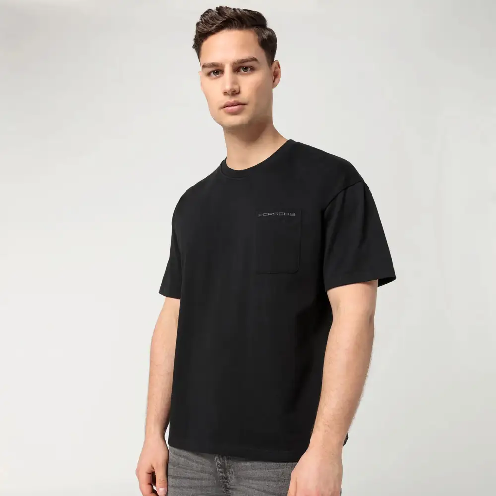 Esta camiseta unisex combina un aspecto moderno con un material de alta calidad. El corte cuadrado y el algodón de primera calidad garantizan un alto nivel de comodidad. El bolsillo de parche en el pecho izquierdo con las letras de porsche completa el aspecto limpio de la camiseta.