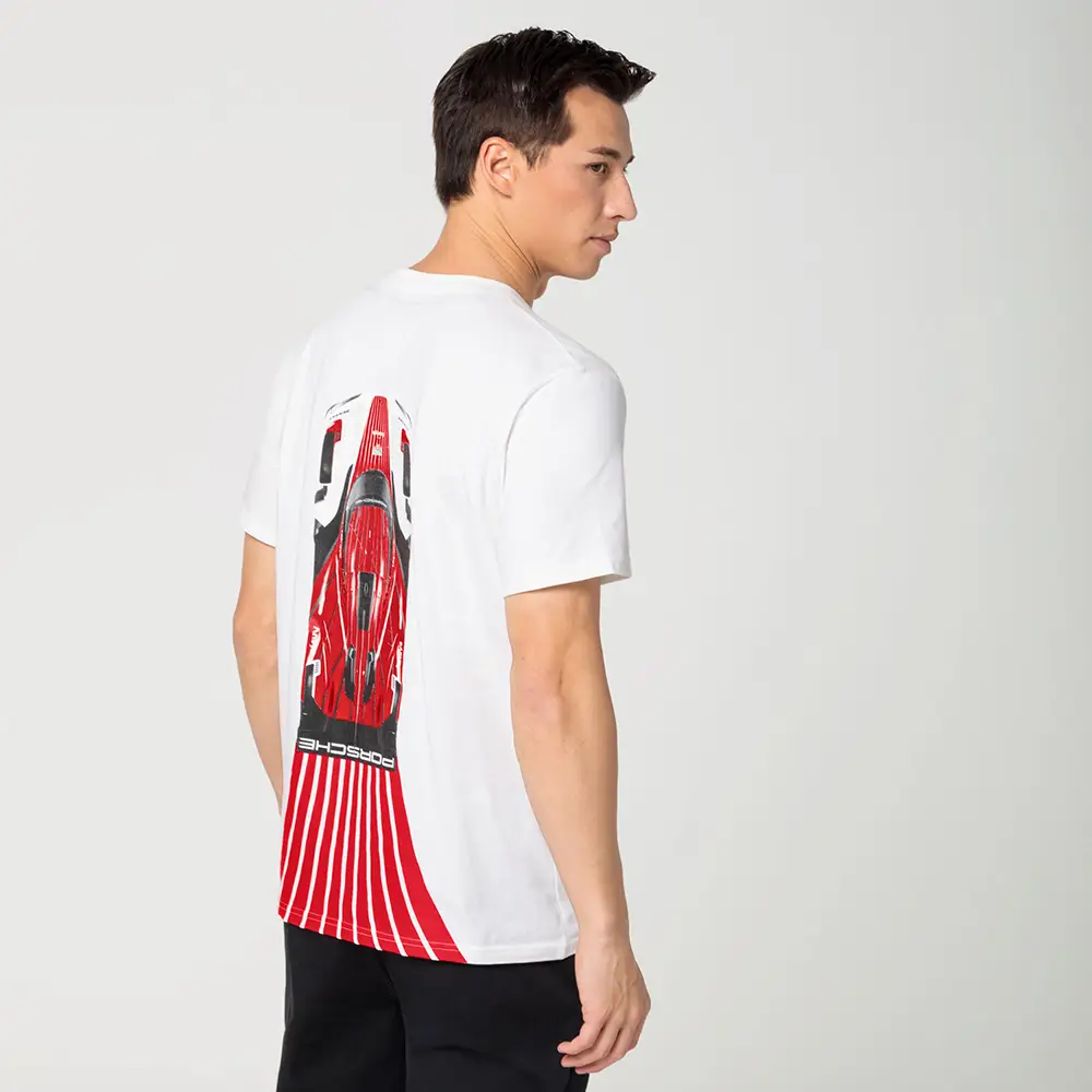 La camiseta de la exclusiva colección porsche penske motorsport muestra su corte regular casual con cuello redondo, el logotipo de porsche penske motorsport en el pecho y el estampado porsche 963 con líneas rojas dinámicas en la espalda hacen de esta camiseta una prenda imprescindible para los fanáticos de los deportes de motor.